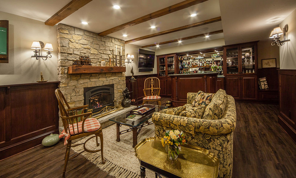This basement was like a time capsule; the walls were lined with 1960s era wood paneling, red shag carpet covered the stairs, vintage lighting hung from the ceiling, and 40 years of memories filled boxes. Warm wood tones, including reclaimed ceiling beams, plank flooring and wainscoting were used to achieve the Scottish pub-like atmosphere. Natural stone was added to the existing fireplace. Layers of light, including wall sconces, recessed cans and Tiffany style pendants, provide multiple lighting configurations to meet the many uses of the space. After 40 years of waiting, the homeowners were delighted with the end result.