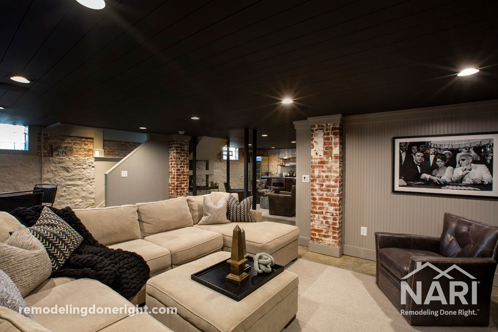 These repeat clients wanted to finish the last piece of their nearly complete remodel. Their home, built circa 1918, was extensively remodeled several years prior. The only unfinished piece from the initial remodel was the lower level. Quintessential entertainers, the clients wanted to turn their lower level into a multi-use space that featured an industrial look and included a dry bar, media room, and cellar for their wine collection. Priorities shifted when the COVID-19 pandemic began. The lower-level space became the ideal sanctuary to get away when truly getting away wasn't an option.