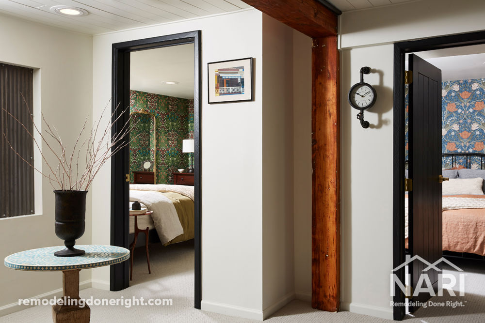 This family wished for a more inviting basement they could use for relaxing together and for entertaining guests. Looking for a luxurious guest space that matched their vintage vibe, they incorporated subtle tweaks to the floorplan that allowed for an updated bedroom, bathroom, and lounge area for guests. Vastu Shastra, an ancient science of architecture, was utilized to inform the design approach, curating the perfect vibe for a space the whole family can enjoy.