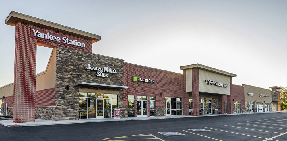 The Yankee Station project was an exterior renovation of a +/- 33,000-square-foot retail center. At the time of construction, the building housed three tenants, and had a storefront comprised of a variety of materials, creating multiple, dissimilar architectural aesthetics. The curb appeal was enhanced to create a consistent and updated appearance, and generate stronger interest from potential tenants. The renovation consisted of the demolition of structural walls to create new openings, and the installation of two blade signs. The existing parapet walls were also raised. The exterior finishes installed were cement board siding, an exterior insulation and finishing system, stone, brick, and LED wall sconces.
