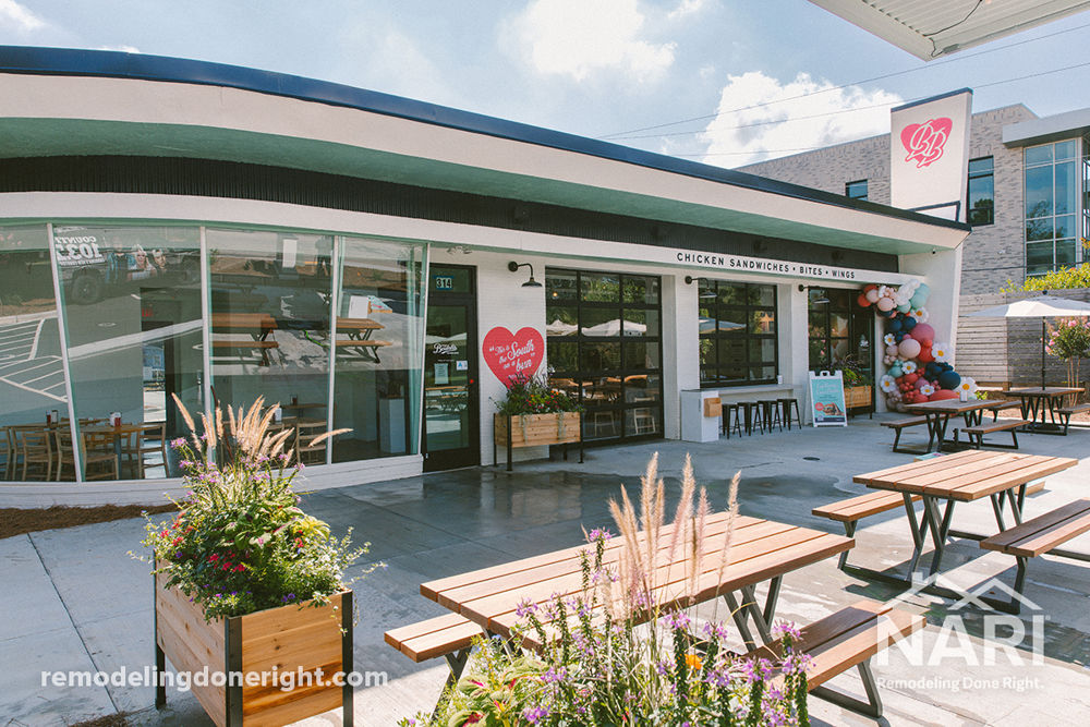 Meticulous efforts revitalized an automotive repair shop and gas station, to a newly transformed space that now serves as the home of a Bossy Beulah's chicken restaurant. The primary pbjective was to pay homage to the building's rich history and architectural details while bringing the Bossy Beulah's vision to vibrant life. The historic character of the original building was lovingly preserved, aligning perfectly with the client's vision. This project exemplifies the successful fusion of history, architecture, and modern utility. The once-tired building now stands as a clean and inviting establishment.