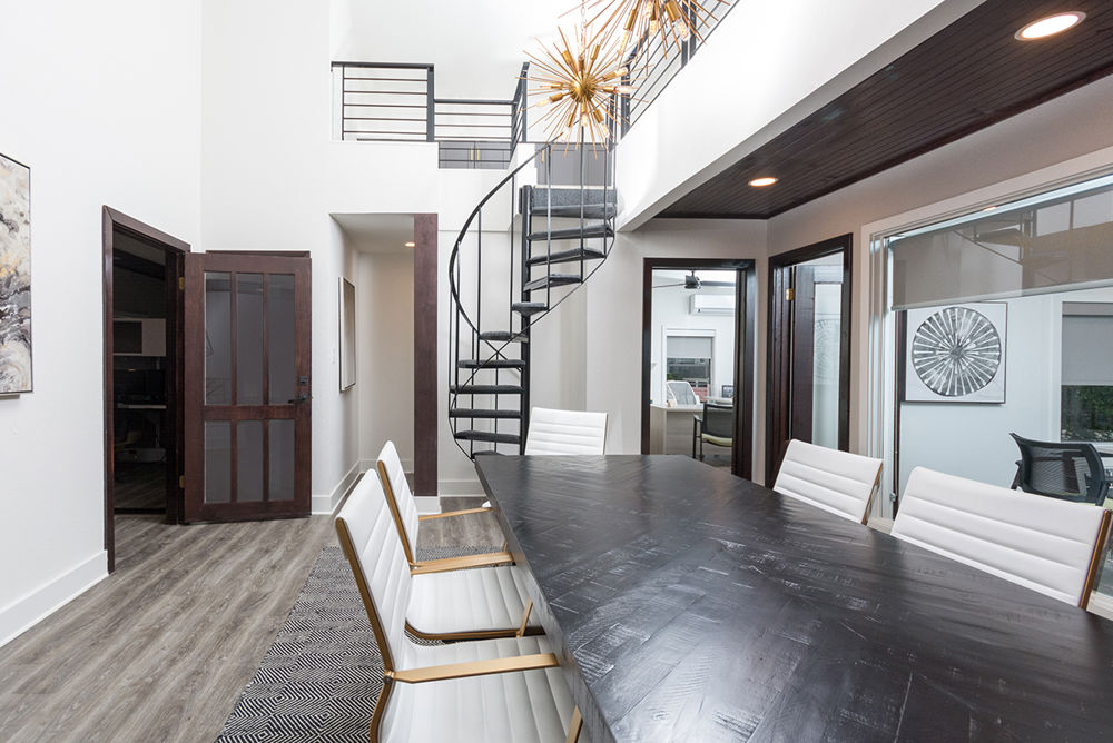 The commercial interior remodel of this older office space repurposed and reimagined the space overall. The stairs, kitchen, office spaces and bathrooms were demoed and new finishes installed throughout. Both units also received new flooring, the doors were re-stained, and all interior walls and ceilings were repainted. This older office space was transformed into a modern haven.