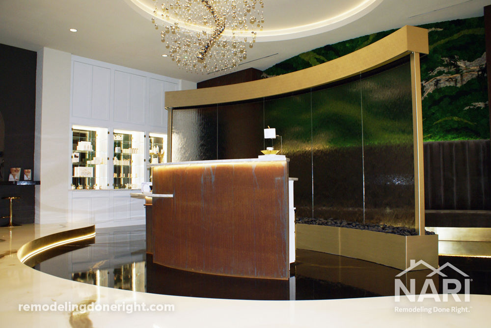 This medical spa needed to create a new space for a unique, urban medical spa. The owner wanted to marry the traditional design of a medical facility with a luxurious spa atmosphere that makes every customer immediately comfortable. With dramatic use of textures, including the eco-core wall tiles, living moss art, and an innovative water feature give the entire office an emphatic wow factor.