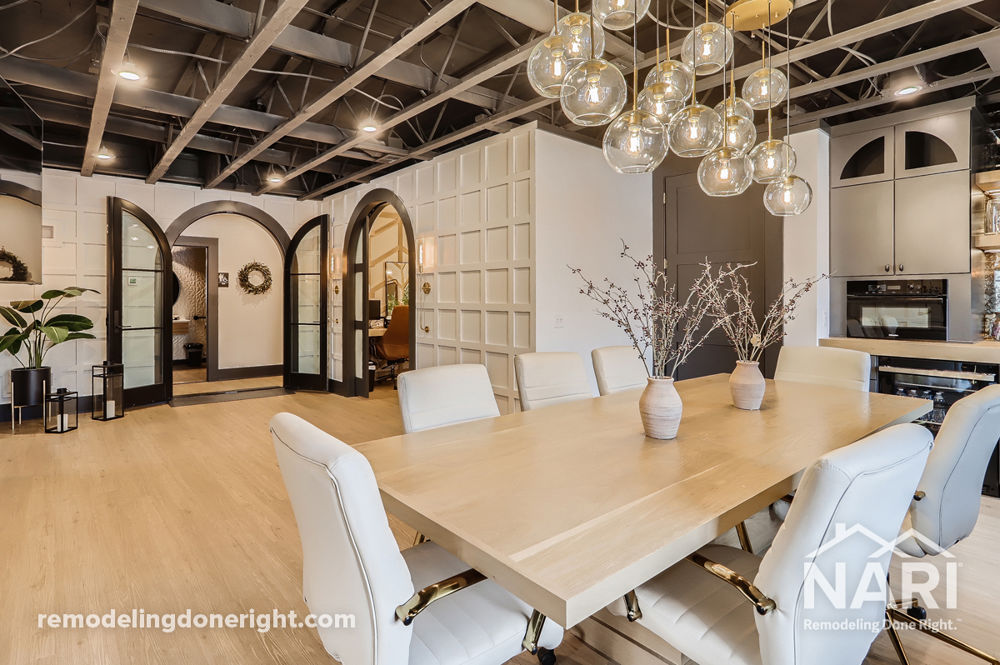 This second-story office space was designed to be split into multiple areas to encourage work productivity. Using innovative wall textures and bold colors, an upscale, modern style was implemented while keeping the original structure's classic, industrial look. The new space houses a common space to house storage, executive offices to greet clients, and a conference room area for working meetings. A third space was also built for employee use, complete with individual offices and a common area for drop-in use.