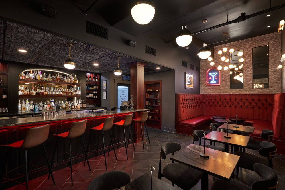 The 'Foundry to Finesse' project revitalized neglected areas of a historic early 1900s brick building, formerly home to a beloved local bakery. Former foundry and storage areas, along with an unused section of the bakery, were transformed into a vibrant speakeasy with a French Moulin Rouge ambiance. The texture-rich design emphasizes small seating areas and intimate gathering spaces. Key features include a luxurious alcove, strategic lighting, and unique elements like a bookcase door concealing a utility room. This newly designed space now serves as a dynamic nighttime hub for the community.