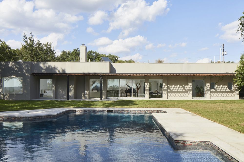 This home, purported to be the first concrete earth dwelling in Austin, sits at the apex of the Hill of Life, tucked into the hillside. An unassuming brick box from the street, the original project was sited to take advantage of the sweeping views of the Barton Creek Green Belt. Other goals were to bring in more natural light into the home, modernize the interior and create a museum like setting for the beautiful art collection. Features include a double-sided fireplace with a floating hearth and mantel and vibrant Oceanside Glass tile; and a hand-carved freestanding tub made from a single block of silver travertine.