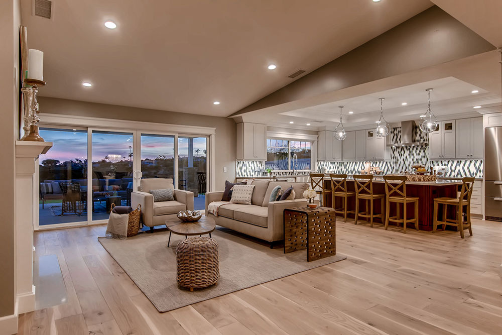 A neglected midcentury ranch with good structure was restored to its original purpose as a beautiful family home. Lived in by one owner, the existing home felt like entering a time warp. This home was dramatically transformed while staying within its footprint to retain a sense of place in the neighborhood. The curb appeal was refreshed with an exterior honoring original midcentury ideas but updated for today. Inside, existing disjointed levels were evened out to create an open expanse, extending to a stunning outdoor living space. With a view over a canyon and beyond to the ocean, this modern home is exceptional.