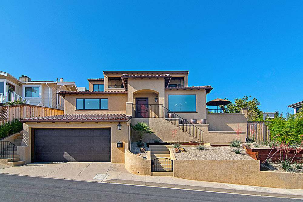 This extensive whole home remodel was designed for a retired globetrotting couple to relax and entertain in after returning from travel adventures. The existing home, built in 1936 on a slope, presented considerable challenges during the remodel, and had undergone renovations over the years in a disjointed style. The clients wanted to respect the home's Spanish design origins while transforming their environment for a modern lifestyle. Curb appeal was significantly enhanced with meticulous attention to cohesiveness. The interior was dramatically reimagined on all three levels. Embracing natural surroundings as a design element, this home reflects a comfortable, sophisticated lifestyle.