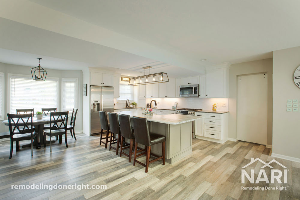 As is sometimes the case, a small remodeling project can grow into a whole house renovation. The clients initially desired a kitchen remodel and a structural wall removed between the kitchen and their modestly-sized family room. Since the work was to be accomplished prior to move-in, an addition was added to the project to expand the family living space. One idea then led to another and the majority of the home was refreshed and updated. The simple kitchen project ultimately turned into an almost new home for the clients and they are absolutely thrilled with the results.