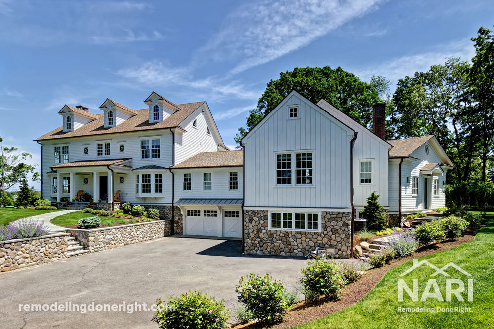 The clients wanted to completely expand, update and renovate their recently purchased home. The completed home consists of approximately 4,800 square feet of living space on three floors, including a finished attic with a guest suite and a dramatic water view of Long Island Sound. The first floor features a traditional living room, dining room, kitchen, breakfast area, game room, mudroom, walk-in pantry, powder room, full bathroom, and a guest bedroom suite. The second floor has three bedrooms, a laundry room, plus a master suite complete with a bedroom, sitting room, master bathroom, and a walk-in closet.