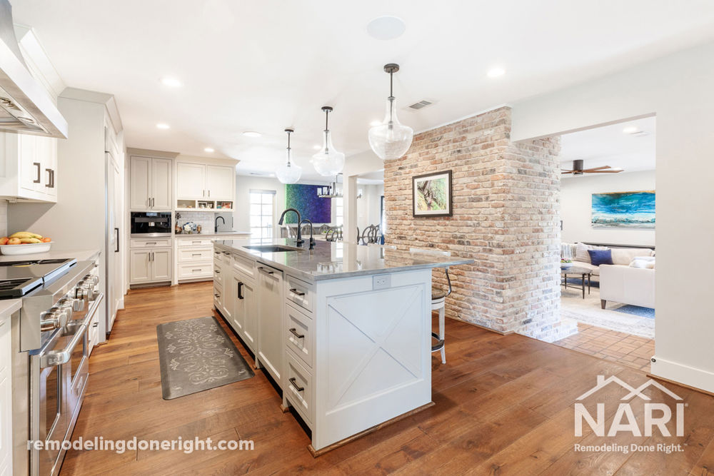 Using the existing footprint, this 1960s home was reconfigured to maximize space and style. By opening the floor plan to enlarge the kitchen, primary suite, outdoor living area, and kitchen, the homeowners ensured that their home would be the ultimate entertaining space amongst their friends and family.
