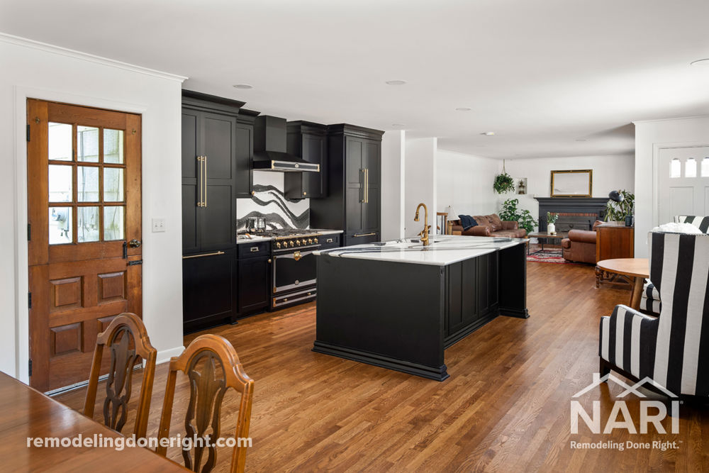 This homeowner purchased their home with the intent to renovate, dreaming of a masculine entertaining space. By removing the walls, a more open floor plan was created that optimized flow and functionality. The new space feels modern and inviting, making it the perfect place to host friends and family.