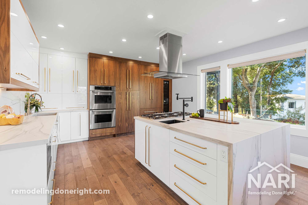 Looking to improve the overall aesthetics of their home, the homeowner's focus was on redesigning their space for enjoyable everyday use. The new design unified the interior rooms, allowing for a work-friendly kitchen and improved secondary bathroom. The result is a warm, inviting space that still feels modern and sleek to the wandering eye.