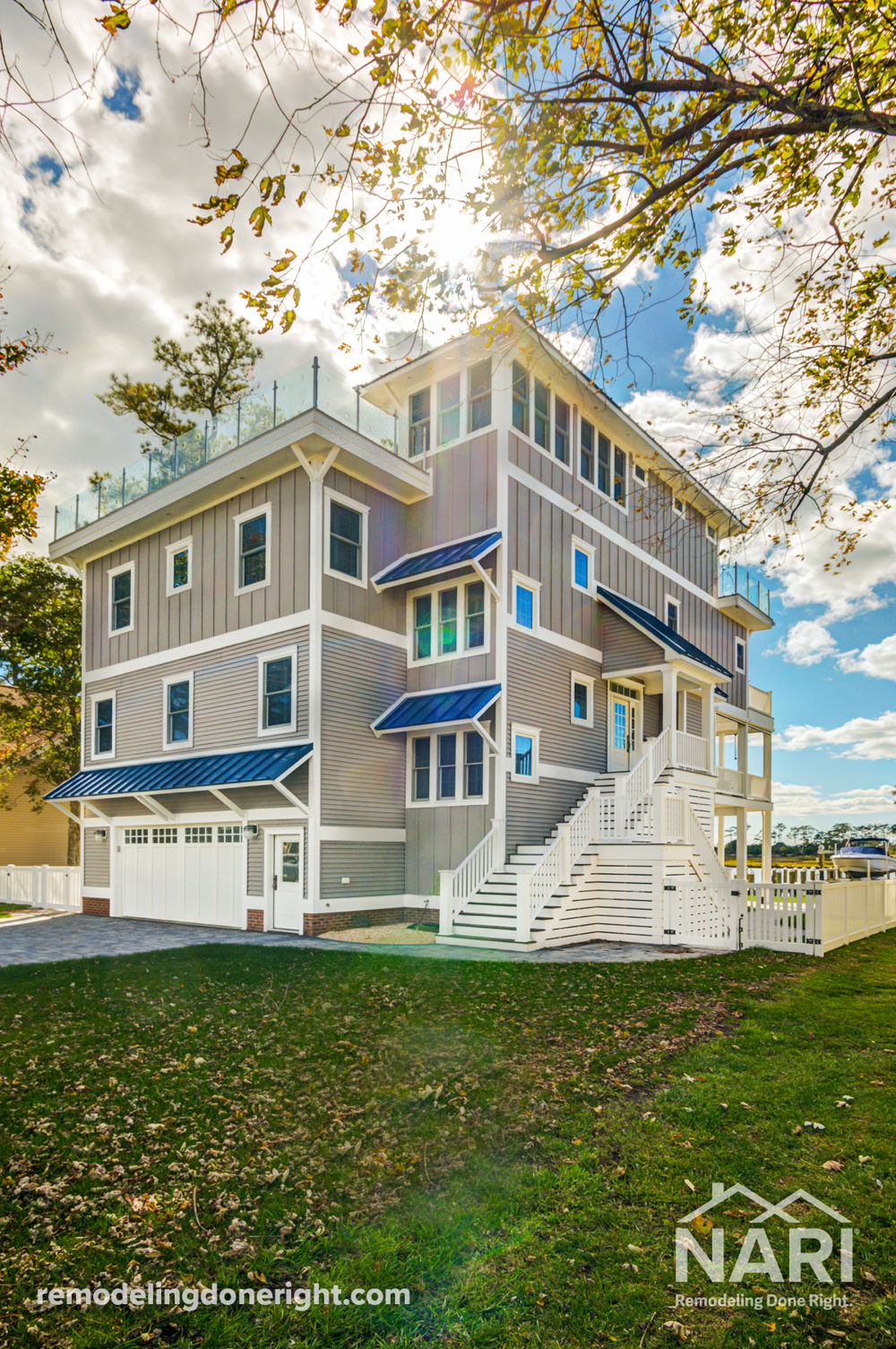 Yearning for a modern oasis, these homeowners chose to open the second and third floors to utilize extra square footage. A steel beam was incorporated to provide structural support for the rooftop deck and stair tower. The stair tower incorporated elements from every floor to create design cohesion, elevating the style from traditional to modern.