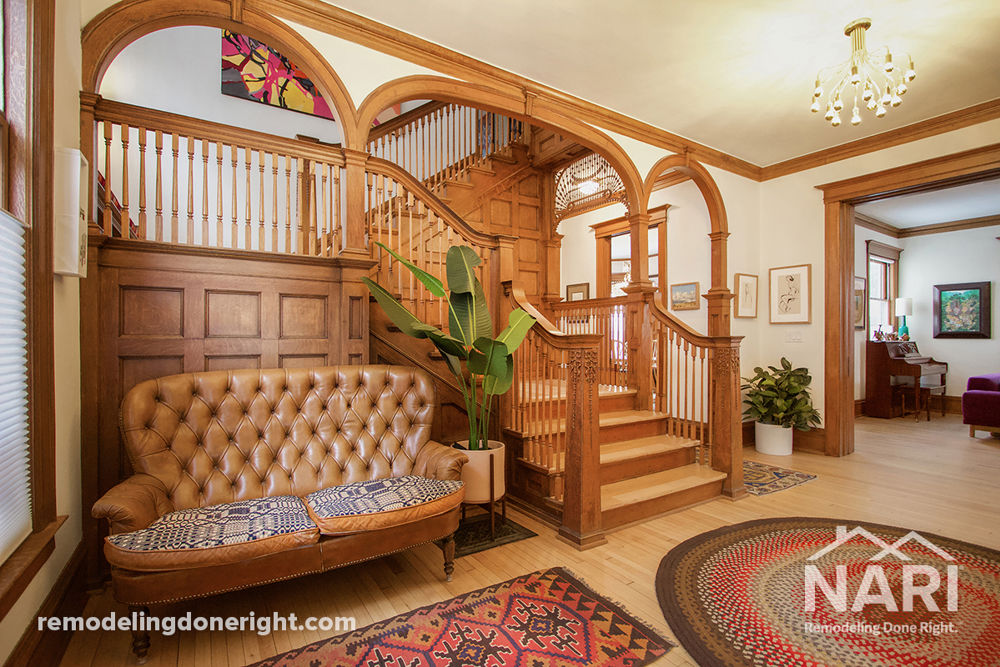 This home was built in 1897 in the Queen Anne style. The client wanted to the remoded to center around the concepts of stewardship and longevity as key tenets of the decision-making process. While large portions of the interior woodwork remained in excellent condition, a series of renovations in the 80s and 90s had dated the kitchen and baths, and left a maze-like circulation path through the rear of the house. The clients see this as their forever home and a multi-generational legacy. As such, improvements were made to accommodate their passions and add modern amenities.
