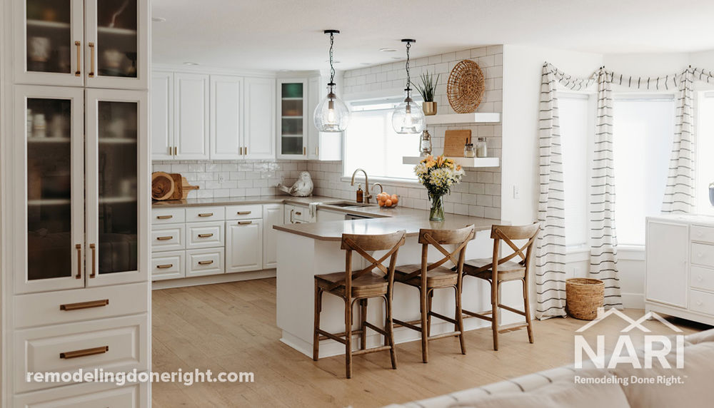 After a decade in their partially remodeled home, water damage spurred a comprehensive renovation. The owners aimed to address the damage and breathe new life into the house, reworking prior changes and updating untouched spaces. The design respects the home's character, enhances natural light, and fosters a fresh, timeless ambiance. The renovation covers the entry, kitchen, two living spaces, dining area, powder bathroom, primary bath, and bedroom. Meticulous details shine in the bathrooms, custom cabinetry, and the addition of rustic doors, creating a harmonious and revitalized living space.