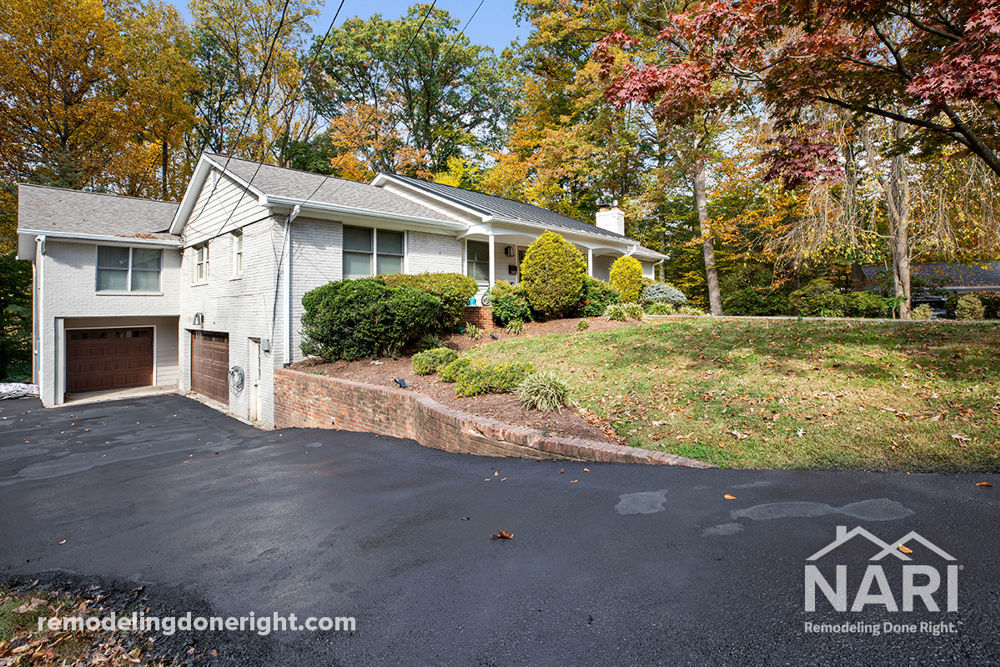 The current residence was not nearly big enough to accommodate all members of this family. The homeowners wanted a large-scale addition to the back of this rambler, creating dual living quarters for both families. They wanted to be close, but not too close for comfort. A new two-story addition of nearly 4000 square feet was added to the back and side of the house. The end result on the main level is a living quarter for Mom with its own side entrance and stairs, a living room, a gourmet kitchen looking at the new decking and beautiful secluded wooded yard, her own Master suite with walk-in closet, built-ins, and master bathroom.
