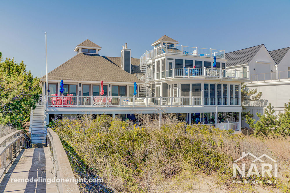 Owners of this beachfront home wanted to alter the exterior of their home to tie in each floor and capture the panoramic beach views from each level. They also yearned for exterior access from each level with integrated screened covered space in the overall design. Additionally, they needed additional en suites for guests and unobstructed parking in the garage, along with a multitude of other upgrades throughout the home. The multi-level exterior enhancements also afforded our clients the ability to see over the beach dunes from many a vantage point.