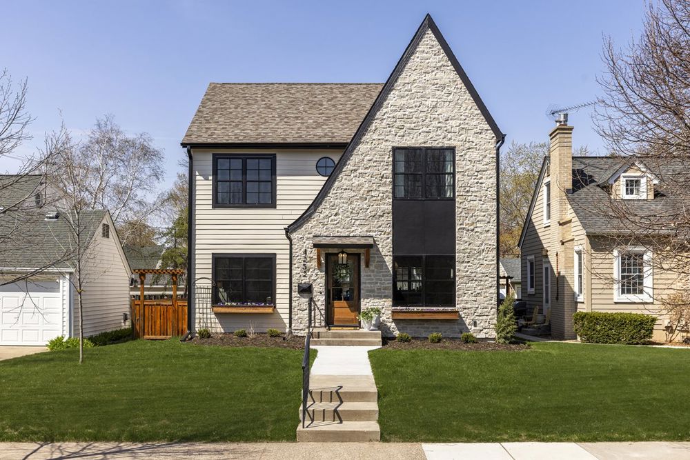This St. Louis Park remodel transformed an outdated home into a nature-inspired Modern English Cottage. Every level underwent modifications, with the half-story converted into a full second level. The main floor was reconfigured, opening the kitchen to the living area. Throughout the home, modern amenities blend with classic elements, such as arched doorways, brass fixtures, and natural stone. The result is a cozy yet elegant home designed for a family of two.