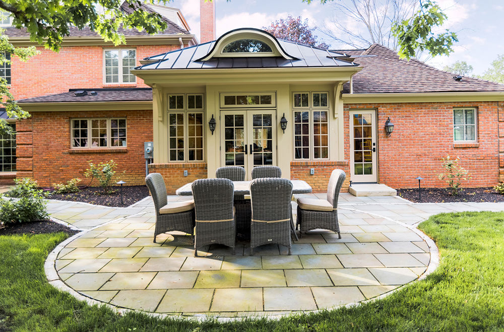 This project successfully integrated a kitchen, dining and mudroom addition with an open floor plan to accommodate large gatherings, while maintaining an intimate spatial feel. The addition's exterior brought visual interest and hierarchy through the use of interesting roof forms and building massing to an otherwise understated rear façade. The interior was transformed into a highly functional space with contrasting custom cabinetry, including a walk-in pantry built into the cabinets. The collection of interior spaces retained their singularity through the use of varied ceiling treatments, including a coffered living room, a smooth kitchen ceiling, and a custom vaulted dining room ceiling.