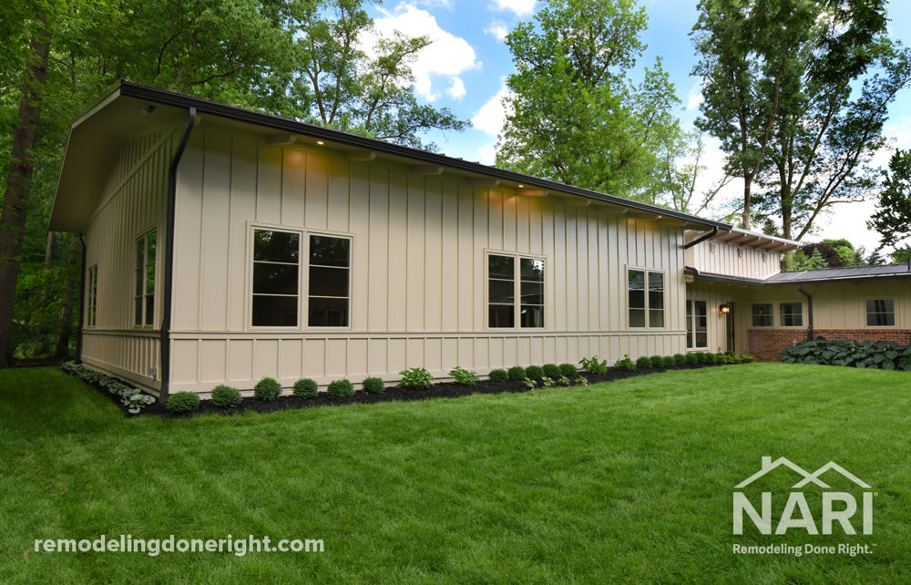 These clients are former college athletes with three very active kids who play every sport possible and love to entertain. They wanted a new space where they can stay fit all year round without having to leave the house and a space that will hold plenty of guests while entertaining. The new addition includes an indoor basketball court, with a storage room adjacent to the court area, and an entertainment area with a pool table, foosball table, card table and tv viewing area. The addition has an industrial feel with exposed brick, black metals and exposed duct work.