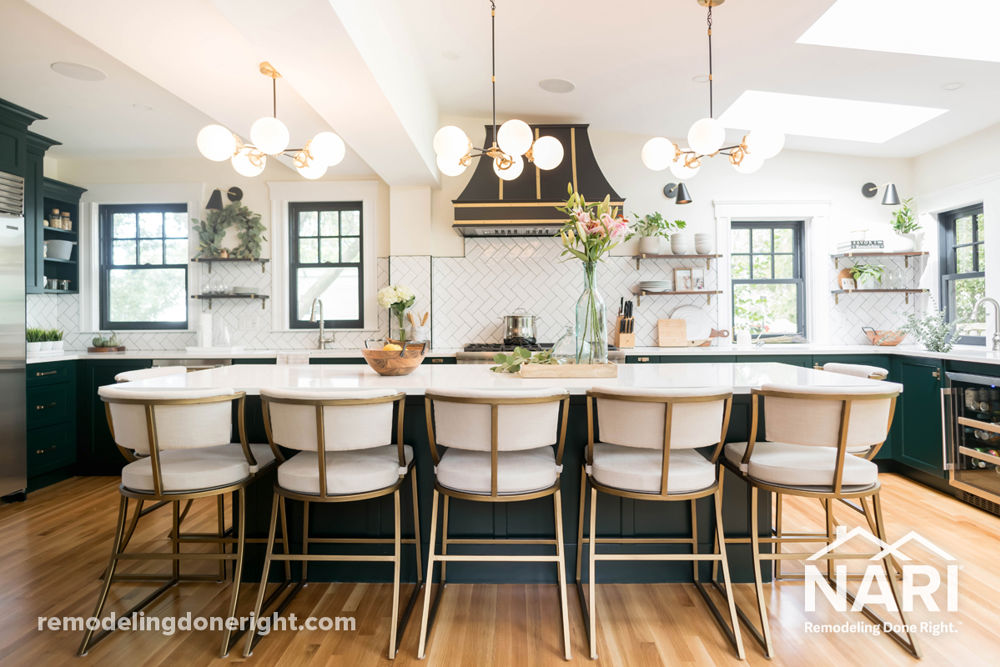 This kitchen, completed in Watertown, Massachusetts, was an essential renovation for the clients who craved a space for entertaining, while also making room for their growing family. The professional kitchen was designed with hydronic radiant floors, custom cabinets, and an enormous island perfect for food prep and gathering. Eleven new windows were also installed to meet the clients' need for natural light and connection to their backyard. With a toddler and a newborn on the way, this family asked for and received a custom breakfast nook with tons of seating, modeled after a booth from the clients' favorite diner.