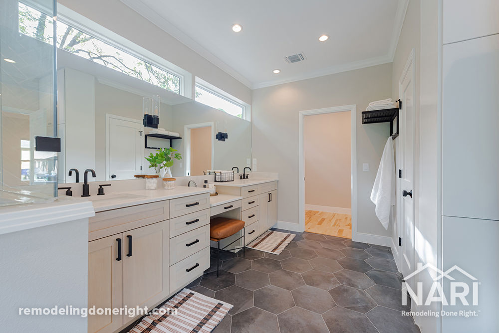 This couple needed to reconfigure their primary suite in order to find more space for them and their children. By building a new addition onto their home, they were able to incorporate a new primary bedroom and bathroom, plus two additional bedrooms, providing space for this family to continue growing.