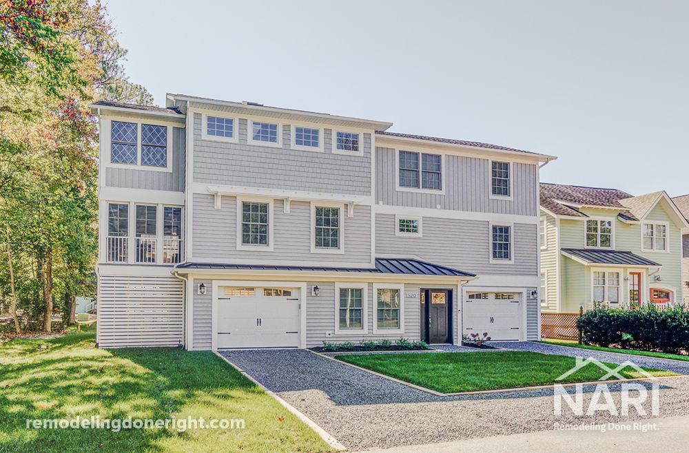 This 1960s style, beach bungalow was situated on what could be 2 individual lots. Our clients wanted to preserve some interior aspects of the original bungalow, partition the lot, move the existing bungalow to the newly approved lot and develop each lot for what would be a family compound just a little over a mile from the beach. This whole house remodel required demolition of the existing garage and containment of asbestos siding prior to engaging the house move. Moreover, the existing home to be remodeled required a 180 degree turn to fit on the newly approved in town lot.