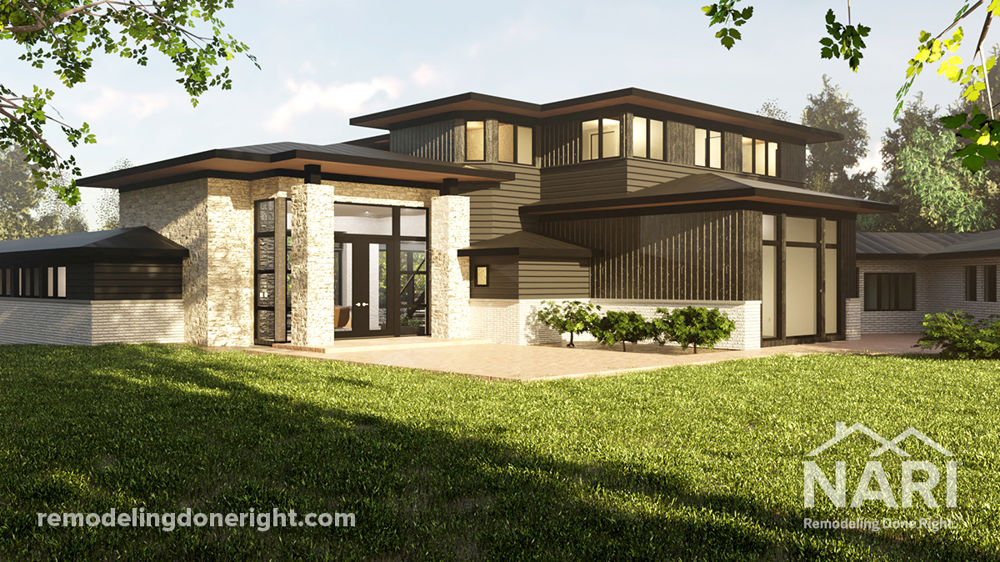 Initially built in 1938, the many additions over the years to this simple ranch home led to a chaotic floor plan. Looking to return the home to its former glory, the homeowner chose to forego some of the recent additions in lieu of a simpler, more functional floor plan. The owner's suite was reconfigured, the entire first floor living area was opened in favor of the backyard view, and a second floor was added with three bedroom suites. Complete with modern designs and fixtures, the finished result amplifies the home's more desirable elements.