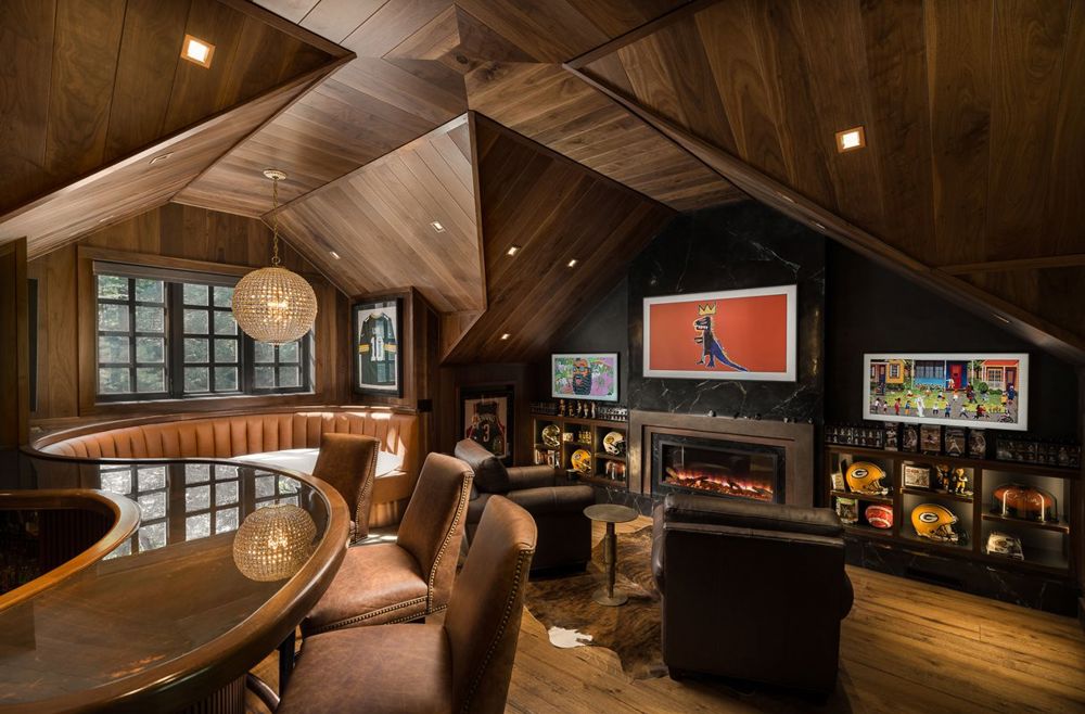 The Speakeasy Lodge is a transformative escape, inviting guests to relax and indulge in refined luxury. Located in northern Wisconsin, this once-unused attic has been reimagined into a 482 square-foot garage loft-a cozy retreat perfect for game days, late-night conversations, or quiet moments of relaxation. Designed to evoke the feeling of stepping into a hidden world, every detail blends functionality with thoughtful luxury. The result is a space that offers a timeless sense of comfort and an unforgettable experience for all who enter.