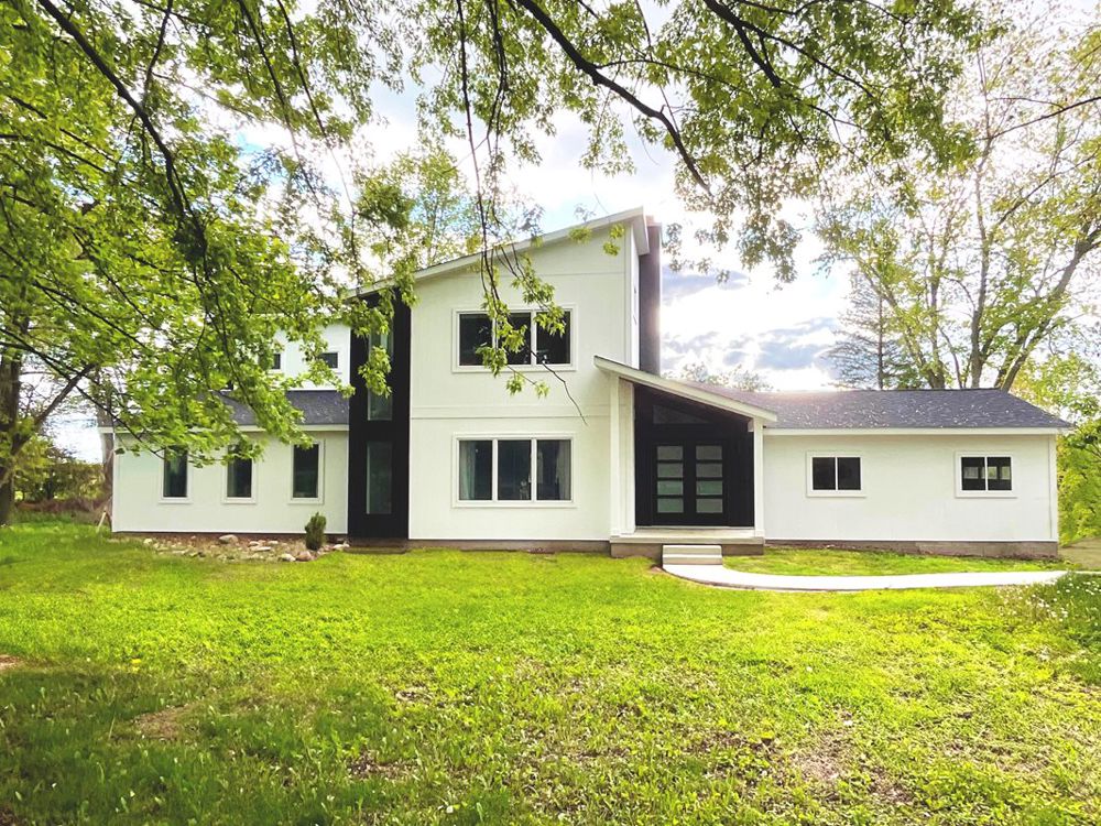 Situated in a picturesque lot surrounded by lush trees, this project transformed a traditional ranch into a contemporary 2-story multi-generational home. Primary and secondary spaces were added to support the evolving needs of the homeowners. Separate wings were created in response to different ages and lifestyles: aging in place on the first floor, children and parents, including home offices on the second floor. Sloping rooflines and expansive windows provide a graceful flow between the natural and built environments, while the new formal entry and dramatic stair tower reflect the visually stunning composition of function and beauty.