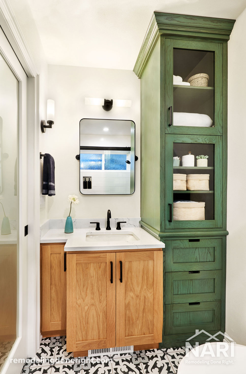 This homeowner wanted to turn their small, dated bathroom into something more spacious and functional. After completing renovations throughout the bathroom, this homeowner now enjoys a space that leverages a modern layout, bright design, and hints of the homeowner's English heritage.
