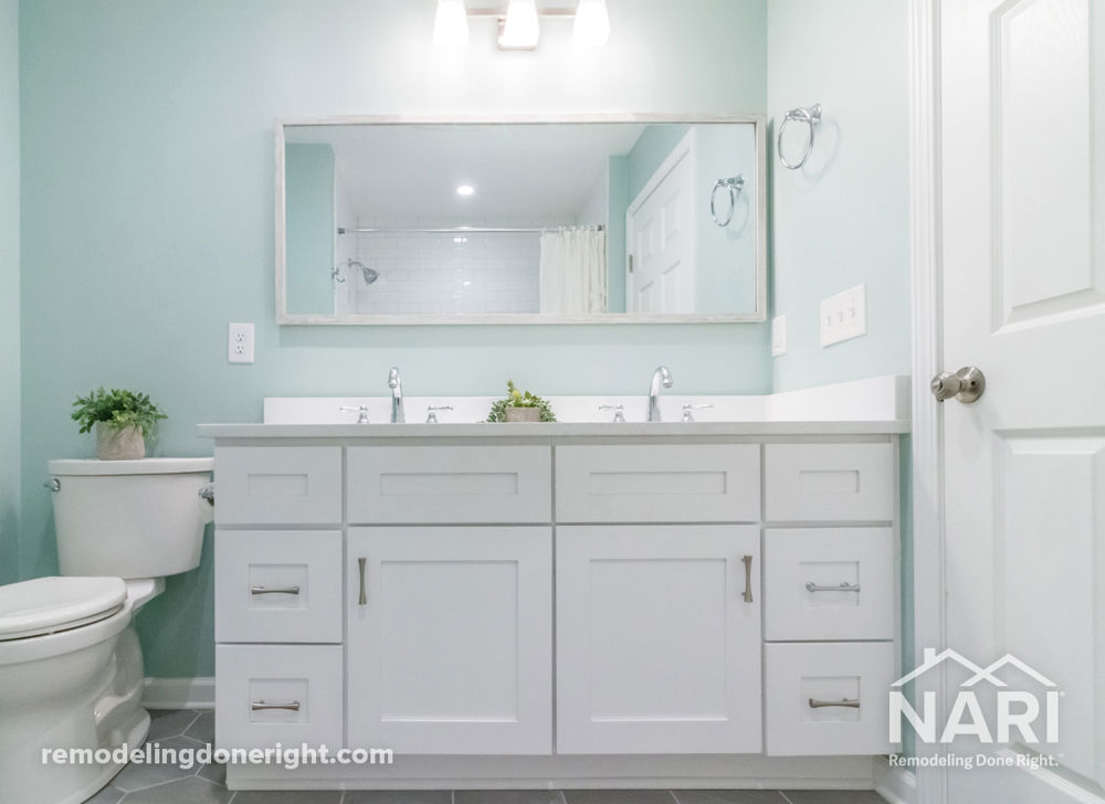 As frequent entertainers, these homeowners wanted to update their small, outdated bathroom so it was more practical for guests and family members. By repurposing adjacent closets, the entire space was enlarged to accommodate the new toilet, double vanity, and larger tub. Topped with tub-to-ceiling subway tiles and decorative hexagonal tiles, the new bathroom strikes the perfect balance between calm and modern.