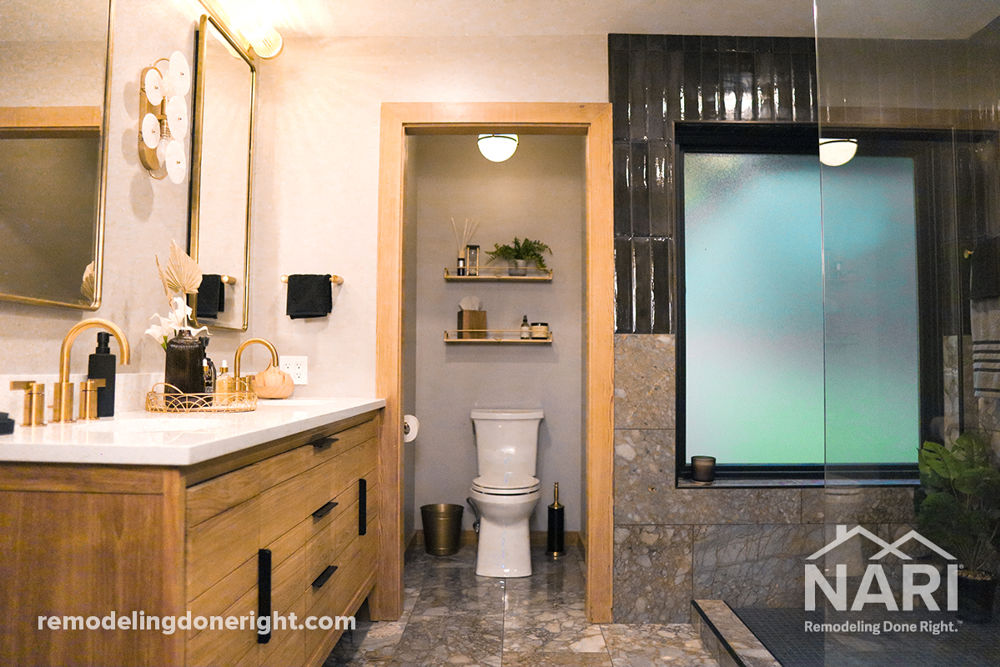 After finishing a kitchen remodel, the homeowners wanted to update their master bathroom. The goal was a serene, contemporary space with organic, moody undertones. Balancing modernity with the home's character posed challenges. The outdated bathroom, with an underutilized tub, was dark and dim. A cozy retreat was created that blends a modern style with its original charm. The result is a seamless, inspired getaway haven.