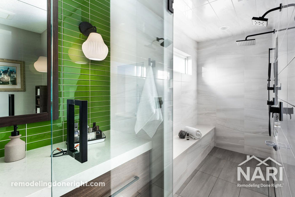 The clients wanted to create a primary bathroom that includes a luxurious shower and open spaces with clean and thoughtful finishes throughout. They hoped for direct access to their closet while also maintaining a laundry chute. The wish list also included natural light, creative storage, and heated floors. This beautiful space will jump start anyone's day.