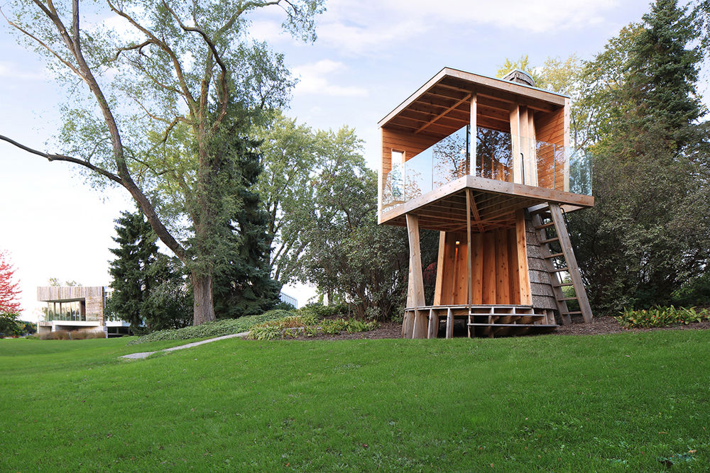 From concept to reality, this complex project was a multifaceted challenge. This modern take on a treehouse needed to match the style of the home that sits nearby, while blending into the natural setting. It was designed to provide a play space for visiting grandchildren and a quiet sanctuary with a view of the river for the homeowners. The structure had to withstand the weather, specifically westerly winds. By using the proper materials and effective building methods, all of these challenges were addressed. The finished project met the clients' expectations of a child's treehouse with modern architecture and a nature retreat.
