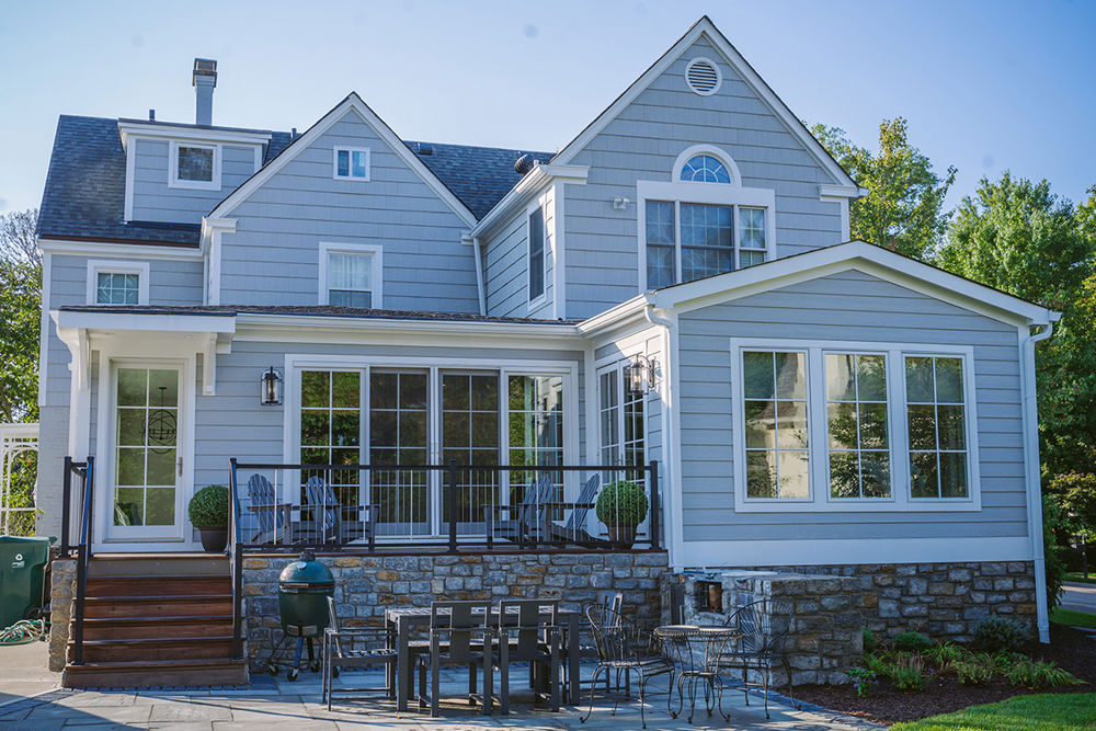 This Hyde Park home got quite the facelift. It went from white painted cedar shakes to grey LP siding for renewed curb appeal. The good bones of this house really shine through with new windows, doors and siding, adding all the character with none of the old house maintenance. A stroll around to the back of the house reveals a new, low-maintenance, deck of ipe wood. The Kentucky fieldstone accents and the deck railing make this outdoor space a roomy extension of the house. The deck steps lead to a new patio, perfect for grilling and dinner al fresco.