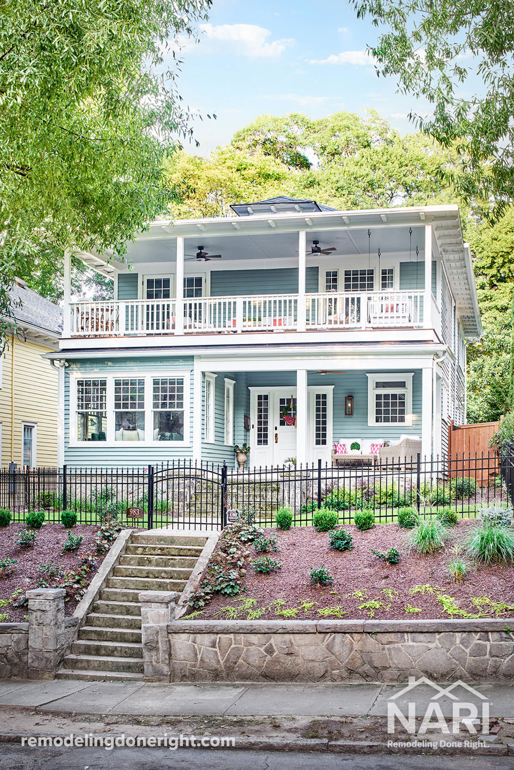 Purchased for location and potential, the homeowners knew it would take a lot to get this home in shape, but beneath all the issues was a showstopper. Sitting on a hill facing downtown, the homeowners knew a skyline view was possible. Adding a historically appropriate covered second story porch created a beautiful space and added lots of charm. The wide-open entry as well as the details at windows and porches are just a few additional reasons this home is treat. The home is now a showpiece that fits perfectly with the neighborhood, and a celebration of a beautiful historic renovation.