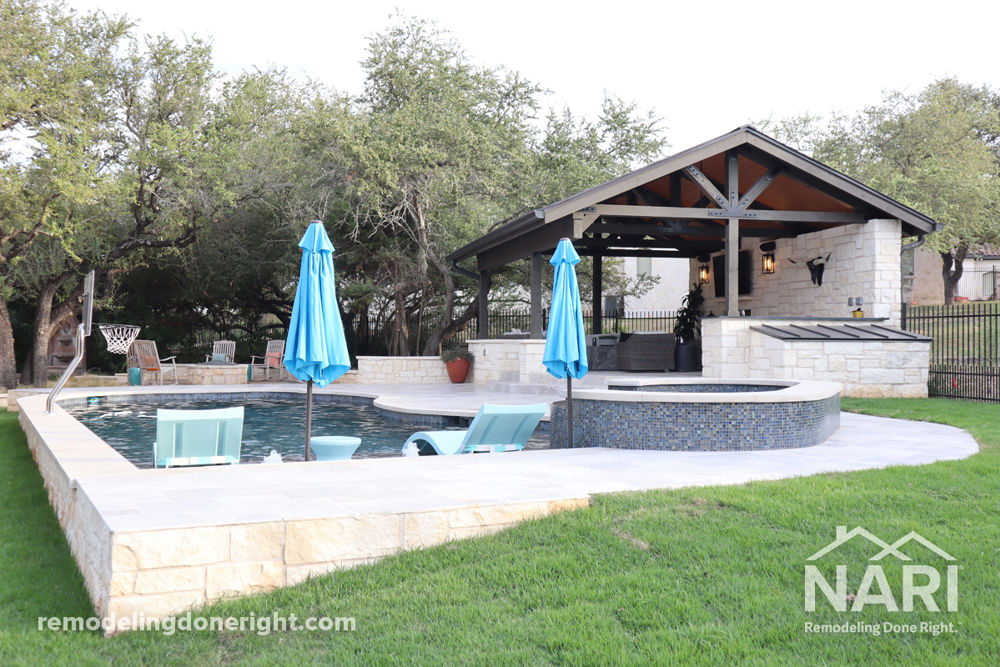 These homeowners were looking to add state-of-the-art features and technology to their home for a luxurious feel that maintained their rustic charm. With a custom-built wood-burning fireplace, an updated bar area with an ice maker and fridge, and handmade cedar trusses, this transformation provides the perfect sanctuary for elevated relaxation.