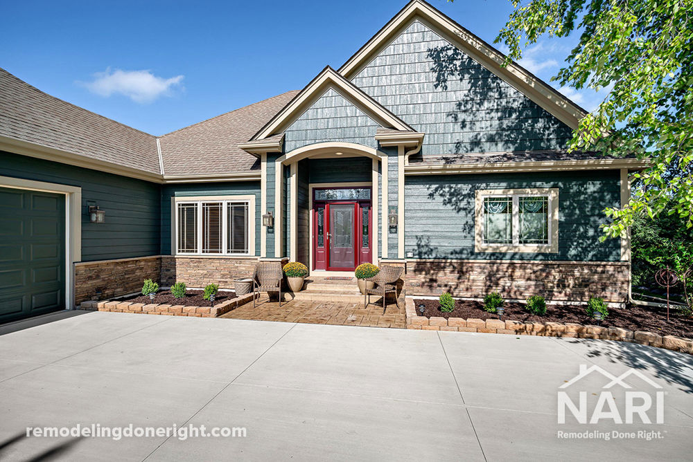 In 20 years, little had been done to the exterior of this home; its cedar siding was quite damaged. Set on a gorgeous, wooded lot, the homeowners wanted their home to fit with other modernizations many of their neighbors had made, including adding stone veneer. They were seeking a wow factor when they arrived home. Major upgrades included a new color scheme, siding, trim, stone veneer, and more! With improved insulation, composite siding to better withstand the elements, modern colors, and stone veneer - this beautiful home is low-maintenance, protected from the elements, and has the curb appeal the homeowners sought!