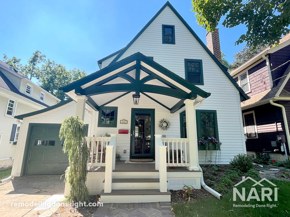 While living in a historic Tudor Revival was their dream, these homeowners knew their home's original structure was beginning to fail. After updating the essentials, like new insulation, siding, and roofing, they were able to shift their attention toward their dream porch. Their new, energy-efficient front porch is spacious yet charming, complementing the style of the home and remaining true to its cherished historic aesthetic appeal.