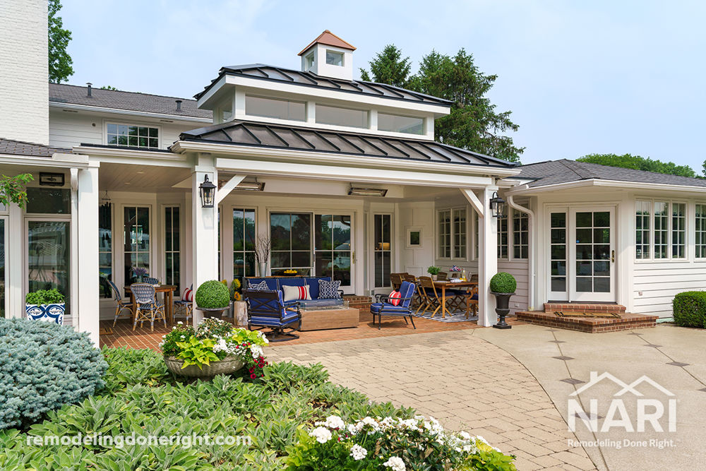 The existing pergola on this home wasn't meeting these homeowners' needs for many reasons. Its appearance was too casual, it wasn't fully covered, and it wasn't attached to the home. These clients wanted this outdoor space to have a high-end feeling to match the rest of their home and property.