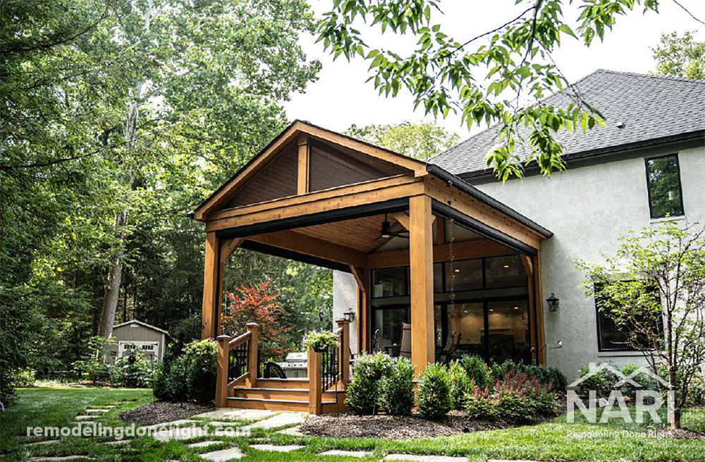 Through the woods and over a stone bridge, this wonderful new home was designed and built on a spectacular piece of property. After living in their home for several years, these homeowners decided they would like to be able to relax, entertain and enjoy their outdoor living space regardless of the bugs or weather. Their request started small, just a roof over the existing deck, but evolved into an expanded and beautiful porch with Phantom Screens.
