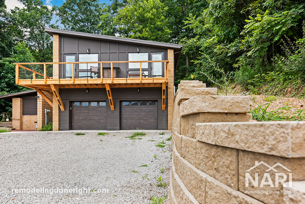 While the recently constructed 2-story garage and guest suite touted enviable views, it was missing the perfect balcony to tie the space together. A new wraparound balcony was fitted with Douglas Fir statement knee braces, support structures, and posts complemented with a stainless-steel cable rail system. The wooden balcony incorporates modern sensibilities yet seamlessly melts into nature, making this the perfect Balcony-top experience for guests to lose themselves in their surroundings.