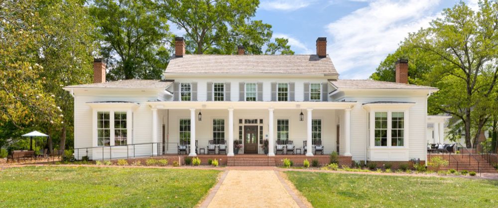 Originally completed in 1841 on two acres in a historic town, this dilapidated house, with rotting columns and a collapsed ceiling, now welcomes nearly 300 visitors daily. During the height of Covid, remodeling began under the watchful eye of a historic preservation society. The goal was to restore warmth, welcome, and hospitality for students from a nearby campus. Objectives included restoring six fireplaces and chimneys, replicating trim details, custom columns, a cedar and standing seam metal roof, and new bathrooms, floors, and an expansive kitchen.