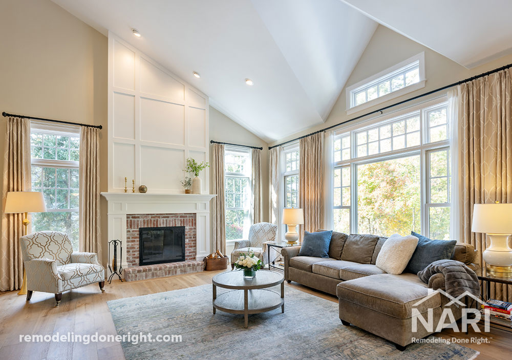 The fireplace in this home is such a focal point for a main gathering area, and the homeowners really hoped to make it more modern looking in a way that fit their style. A beautiful wooden frame was built over the existing fieldstone, painted white with white-washed brick to match that tied to multiple other focal points in the connecting kitchen and mudroom. The homeowners were so happy to have one of their favorite gathering spots finally match their style and make their home feel cohesive and comfortable.