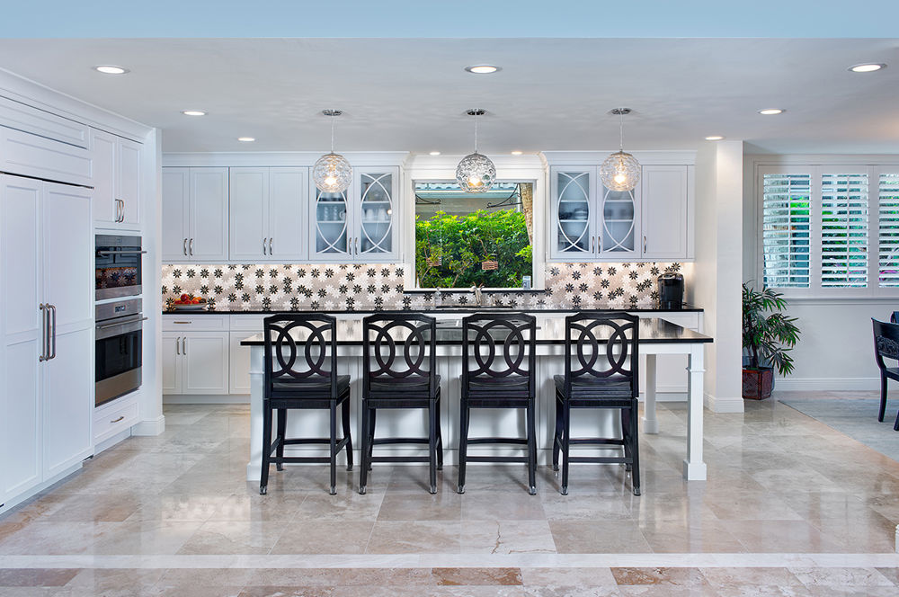 This interior renovaton involved transforming a closed-off kitchen into an open concept floor plan with modern amenities and a better flow to accommodate two home chefs. Moving a couple of interior walls opened up the kitchen to the living room and dining room areas. Rearranging and updating the existing wet bar and laundry room provided these homeowners exactly what they wished for: a layout fit for everyday use and large-scale entertaining.