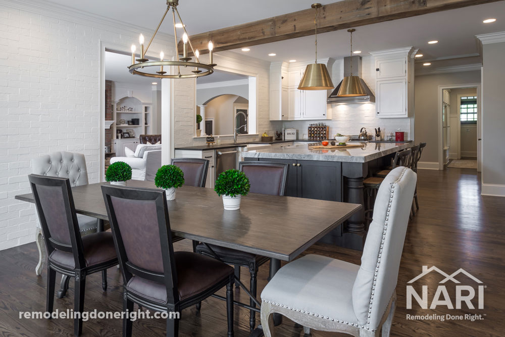 Every square foot of this home was remodeled, from the basement to the second floor, to convert the space into a rustic coastal theme environment. Shiplap and painted brick walls now complement the weathered wood beams that cover structural details of the home. The master shower is a showpiece featuring a black metal framed glass enclosure that complements the finishes of the other materials in the room. Reclaimed wood siding in the ceiling treatment over the pool table provides an extra rustic touch to the basement. The ambiance of the home has garnered recognition nationally through social media outlets and the homeowner couldn't be more pleased with the conversion.