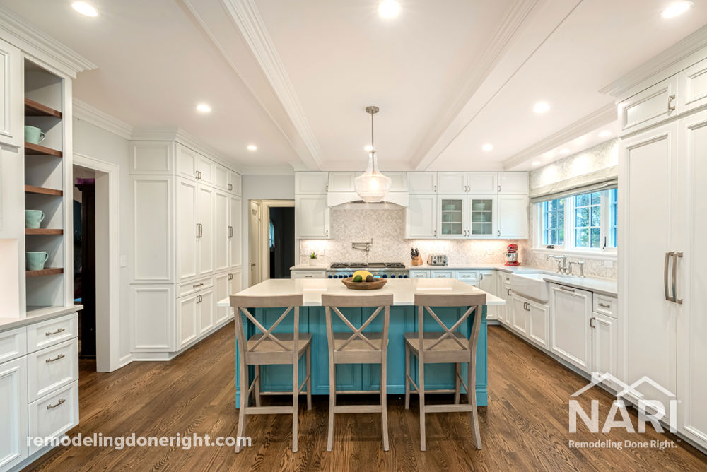 The clients wanted a new design that incorporates a transitional style; one that brings characteristics from the original architecture and combines it with a modern and bright feel. A previous remodel left spaces feeling out of place. With four children and two dogs, functional areas for different tasks were a must. A larger kitchen island with more counter space, an enhanced study station in the family room, added storage in the back entry, and overall upgrades to the existing space to make it more practical accomplished these goals. Designated areas such as the wet bar and coffee bar were incorporated as well.