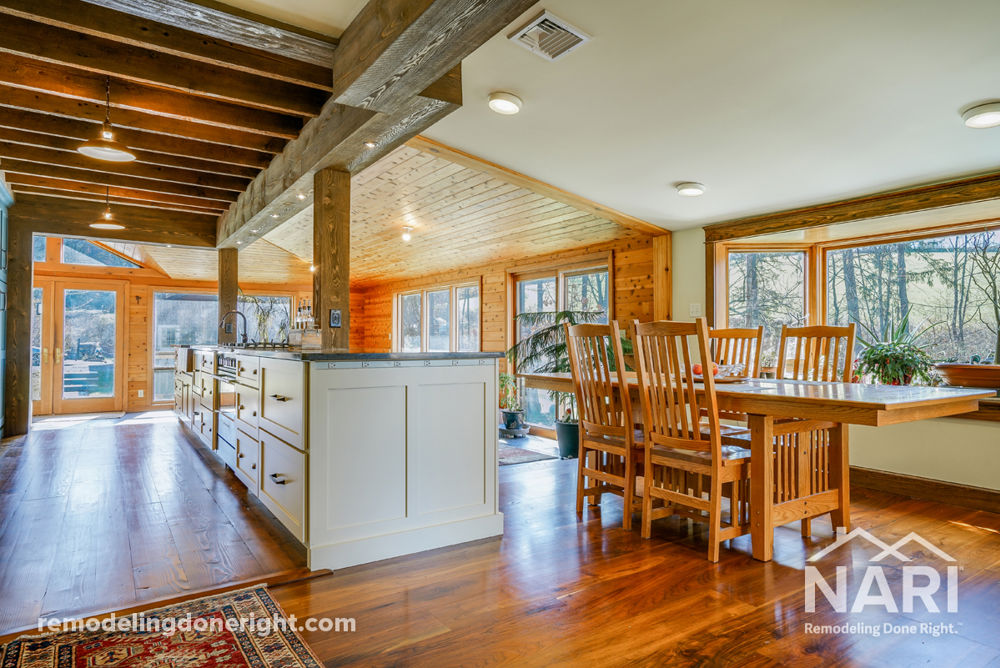 The client wanted to remodel their kitchen and incorporate the family room and sunroom into the design. This required knocking down a load bearing wall. To give them what they wanted, major structural changes to the foundation were made. The existing structure was supported by columns because it used to be an outside open porch. They also wanted a full basement to create more space, and make the floor of the finished living space warmer. The result provides the clients valuable living space, without adding square footage. The new open concept allows them to entertain a lot more and features a nice long island.
